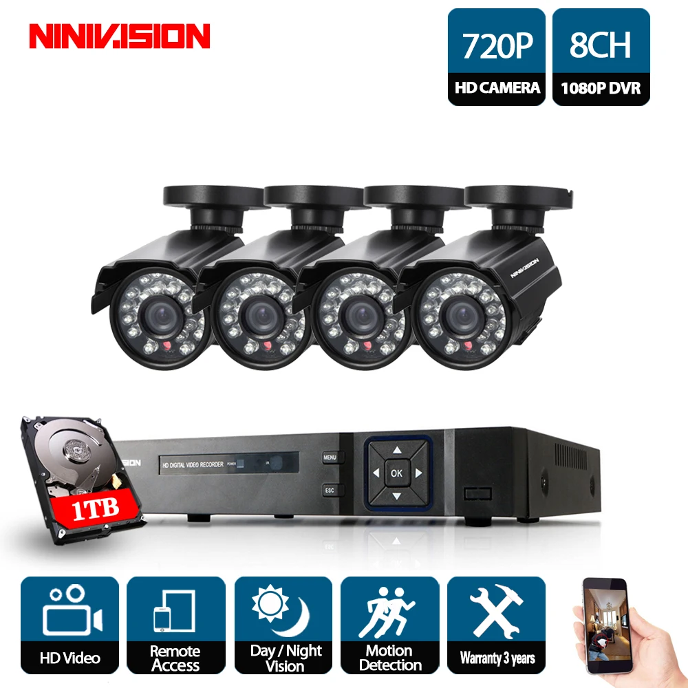 Discount Video Surveillance Security Camera CCTV System Kit 8 Channel 1080N 720P CCTV DVR NVR AHD DVR 4pcs 1